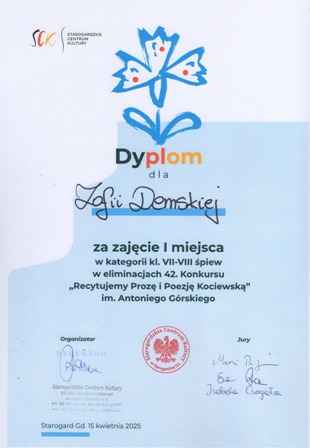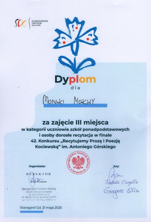 • Monika 2. MIEJSCE w kat. Józefa Bruskiego.